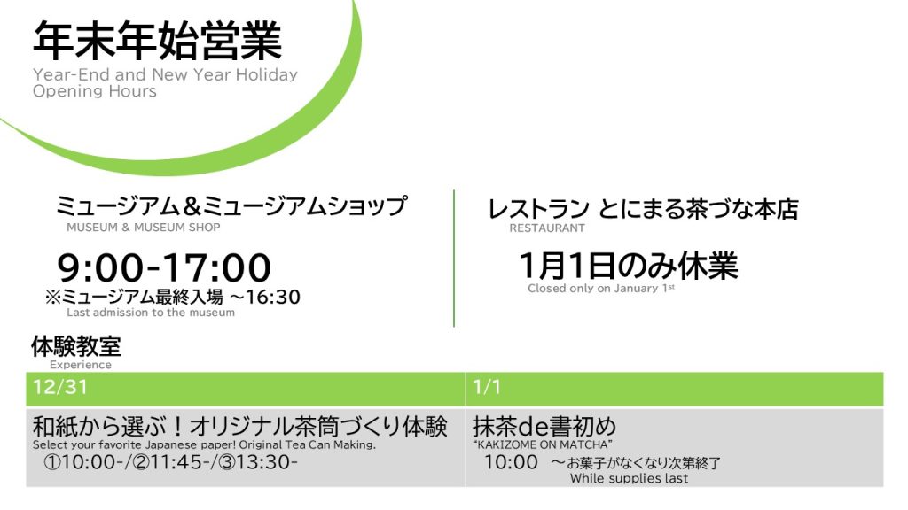 1月1日は昨年好評だった「抹茶de書初め」を開催!✨